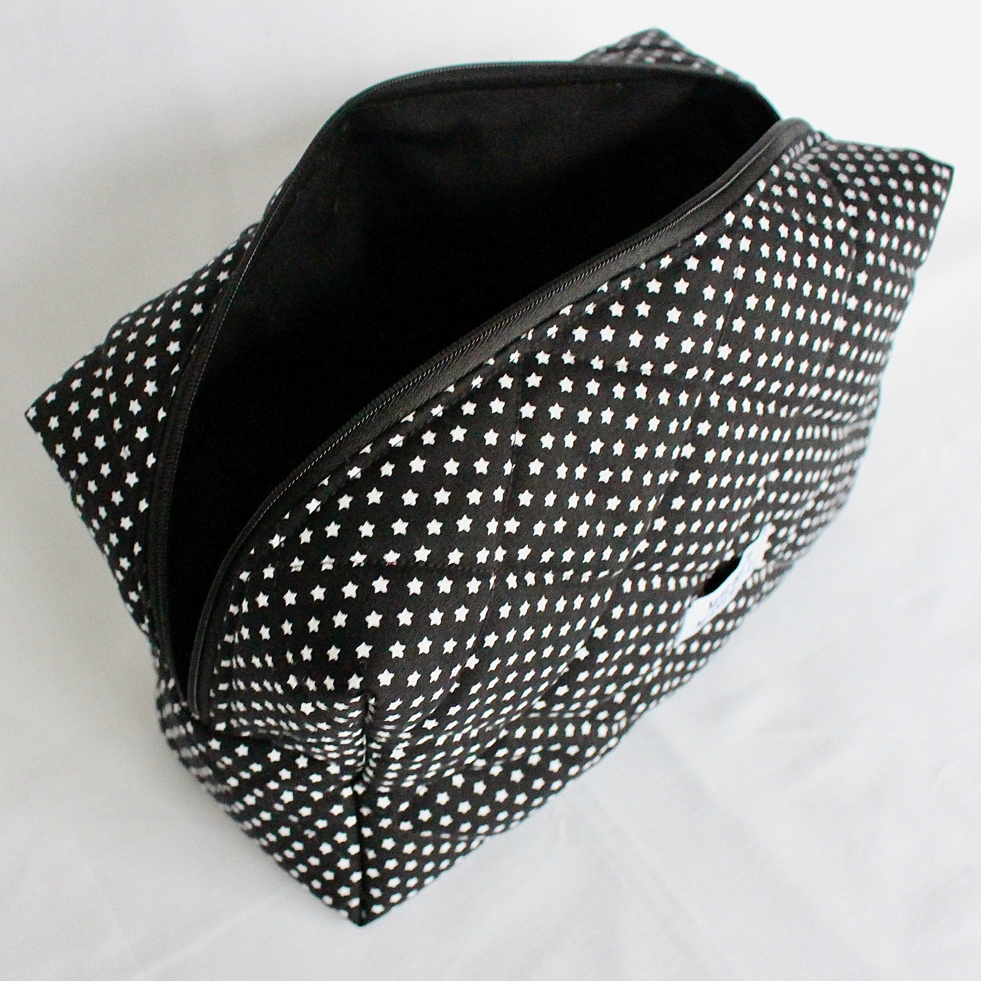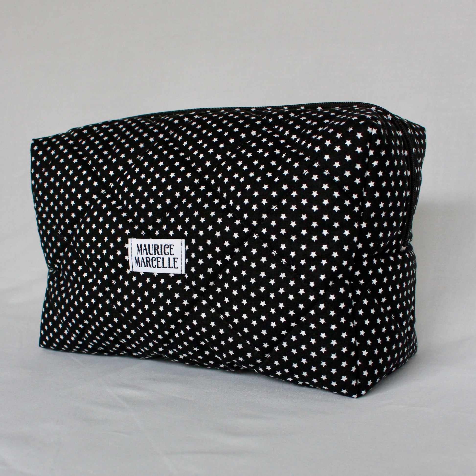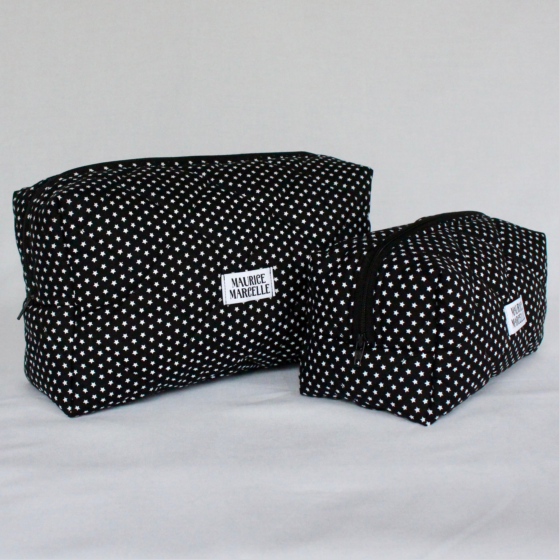 Les modèles ÉTOILES BLANCHES sont doublés avec un tissu noir uni. Le grand modèle a pour dimensions : 25cm x 10cm, hauteur 15cm.