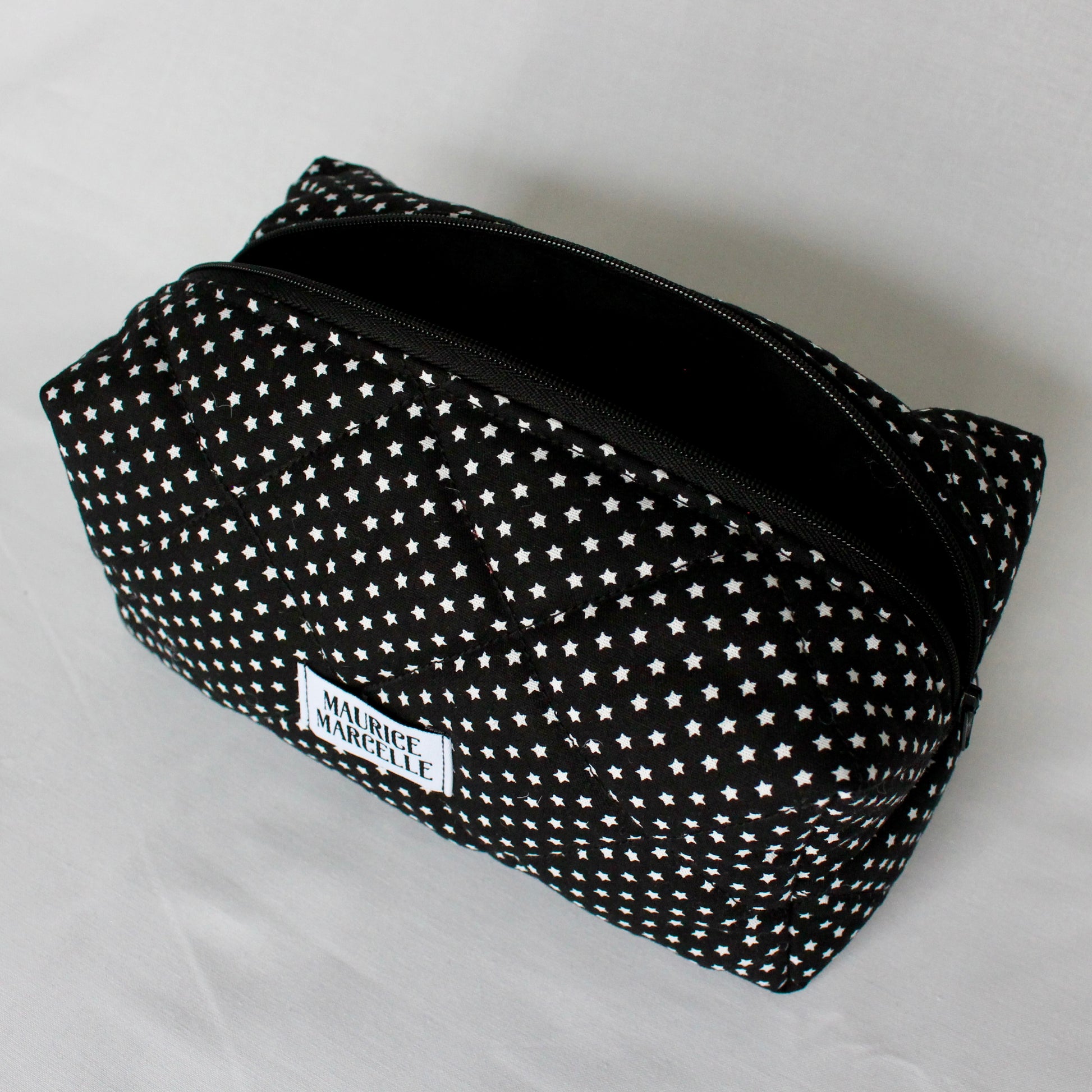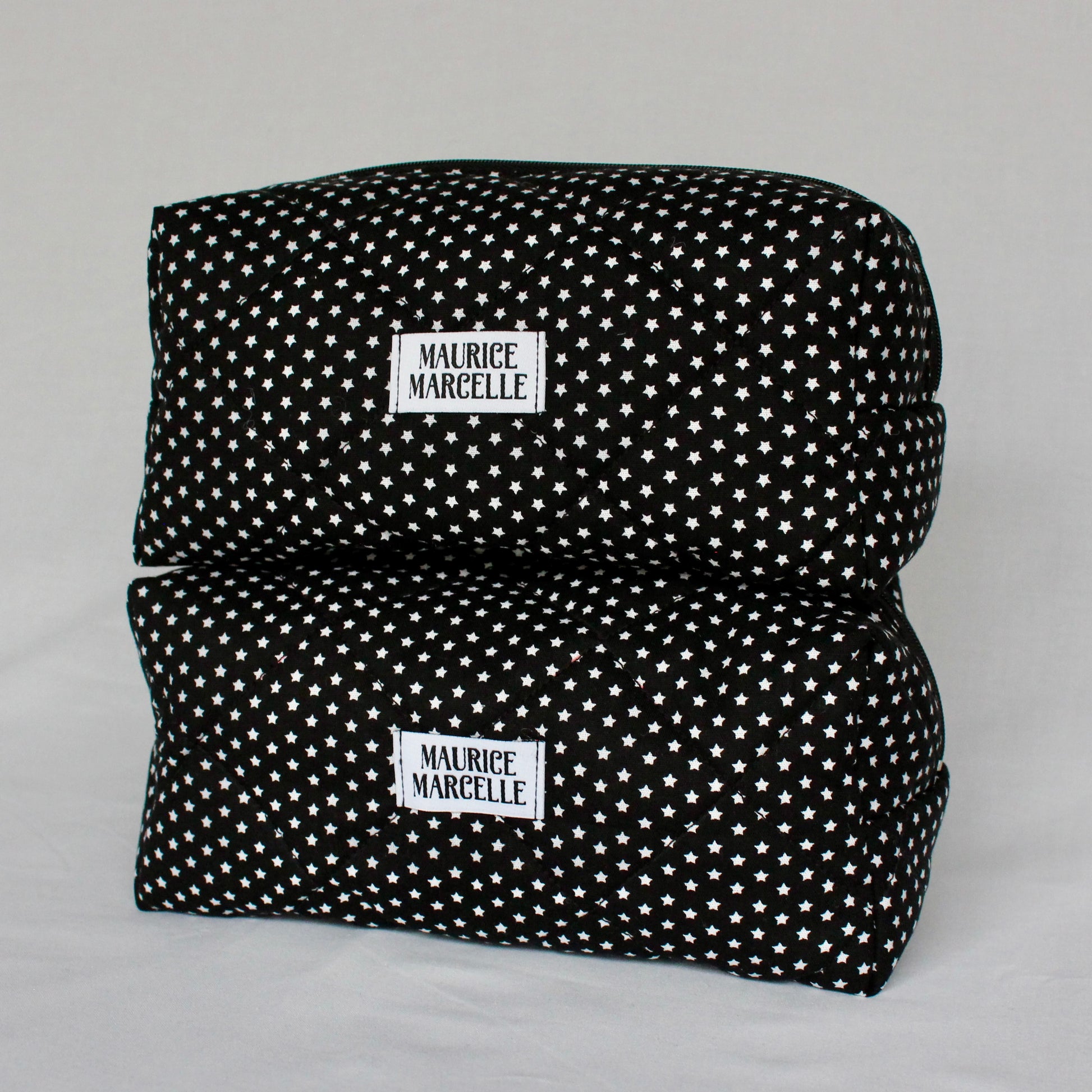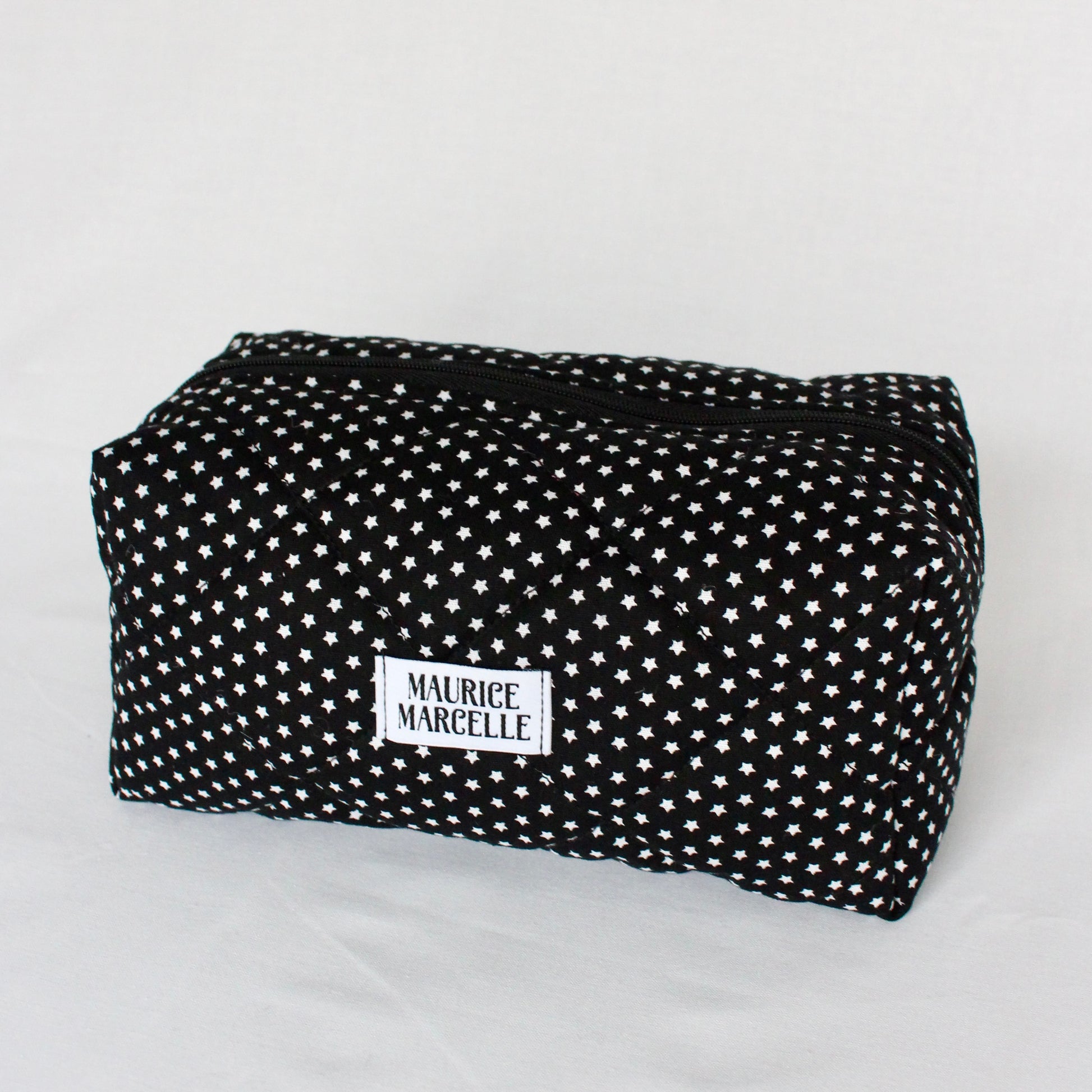 Les modèles ÉTOILES BLANCHES sont doublés avec un tissu noir uni. Le petit modèle a pour dimensions : 20cm x 10 cm, hauteur 10cm.